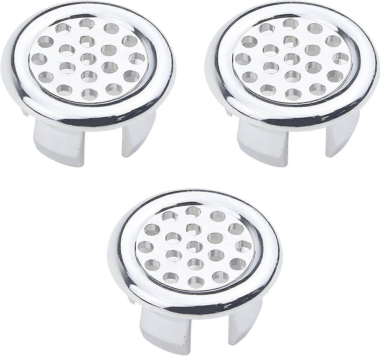Bathroom Sink Mesh Overflow Cover Round Insert Hole Round Cap Chrome - 3 Pieces