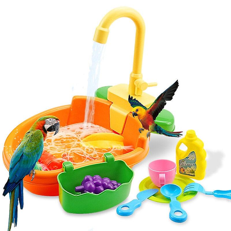 Bird Bath Tub With Faucet Pet Parrots Fountains Spa Pool Cleaning Tool Safe Play House Kitchen Sink Birds Toy Multipur