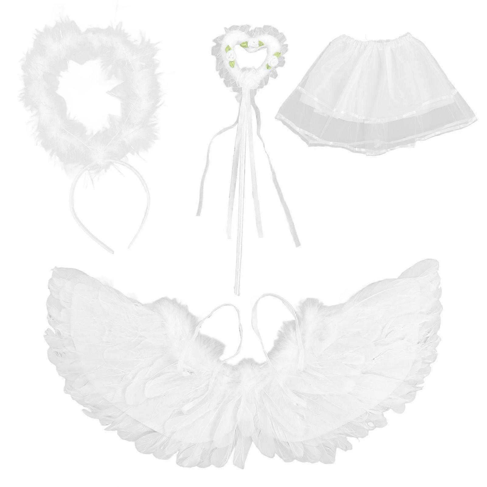Angel Wing White Children Adult Feather Wing Headband Wand Costume for Halloween Christmas Party 4pcs / Set