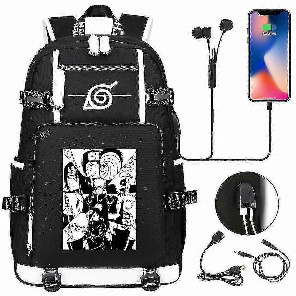 Anime Naruto Akatsuki Itachi Sharingan Backpack USB Cahrge High School Students School Bags Capacity Travel Laptop Shoulder Bags