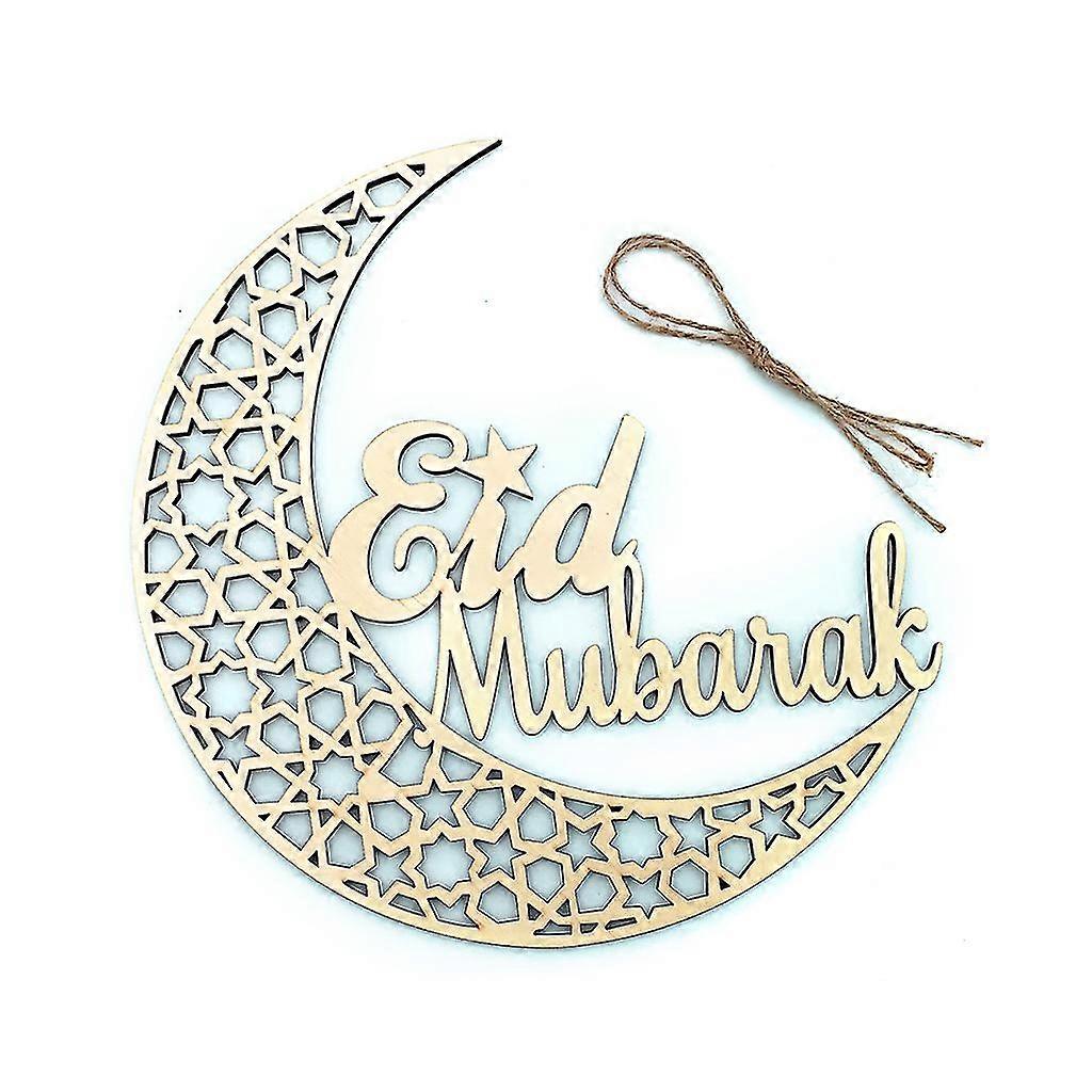 Muslim Islam Moon Eid Mubarak Wooden Plaque Hanging Pendant Decoration Ramadan A