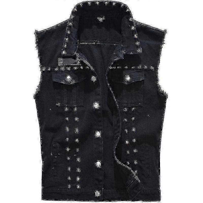 Men’s Denim Vest Sleeveless Punk Lapel Jacket with Rivets for Guoguo Casual Streetwear and Retro Fashion Clothing