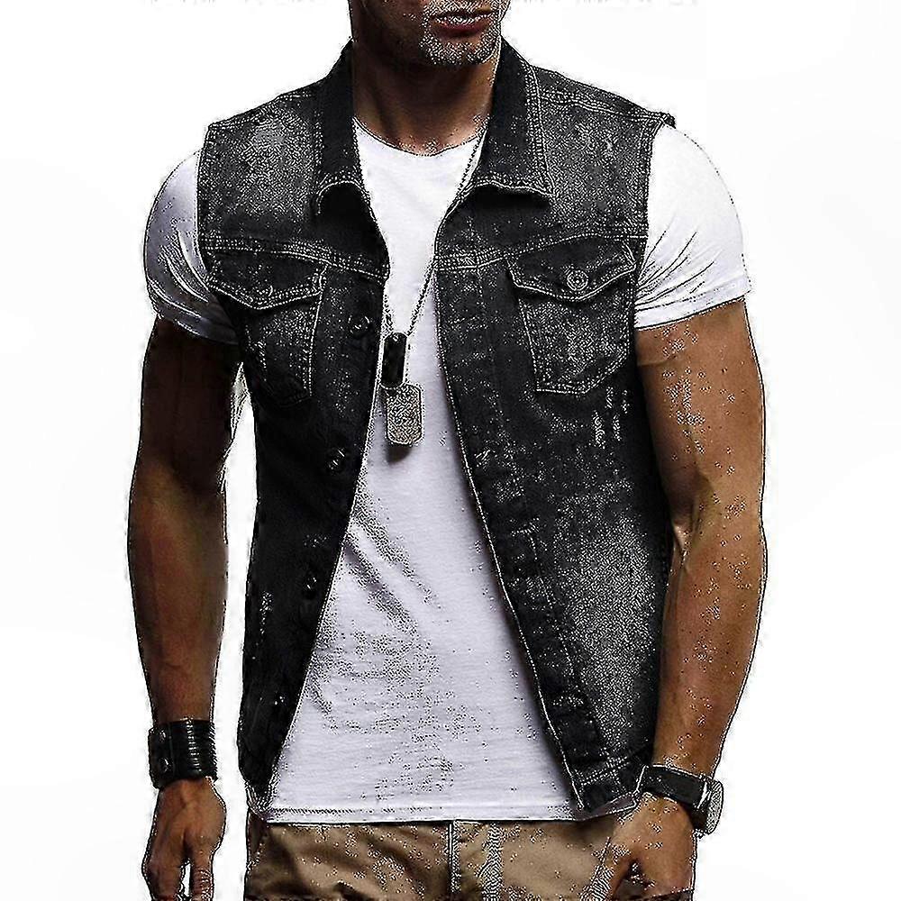 Men's Casual Sleeveless Denim Vest with Lapel Design