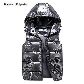אפוד חורף לנשים בצבע אחיד עם ברדס חם, כיסי שוליים אלסטיים בצבע בהיר, אפוד מרופד