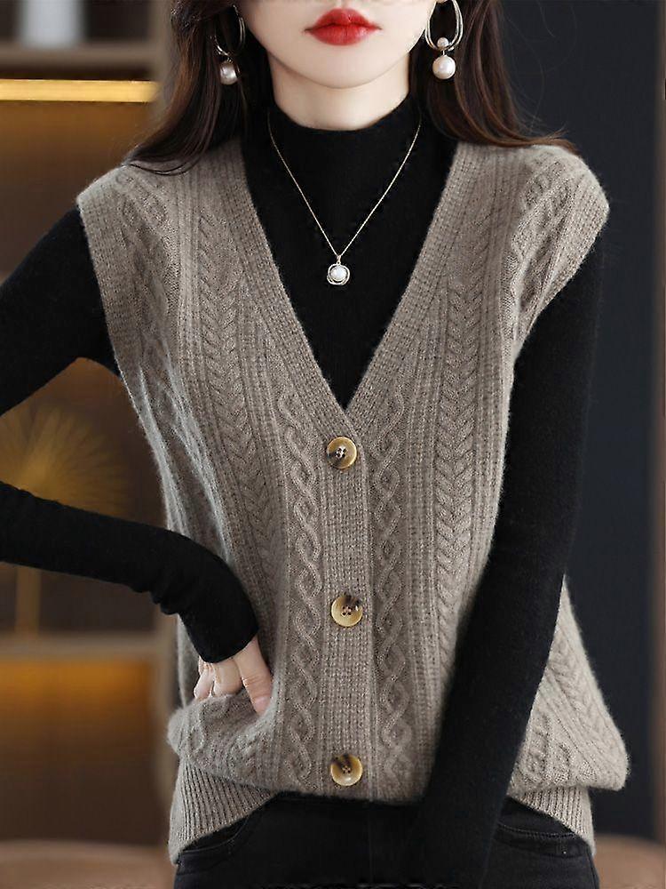 Button Front V Neck Solid Vest, Casual Dual Pockets Rib Knit Sweater Vest for Spring & Fall, Women's Clothing