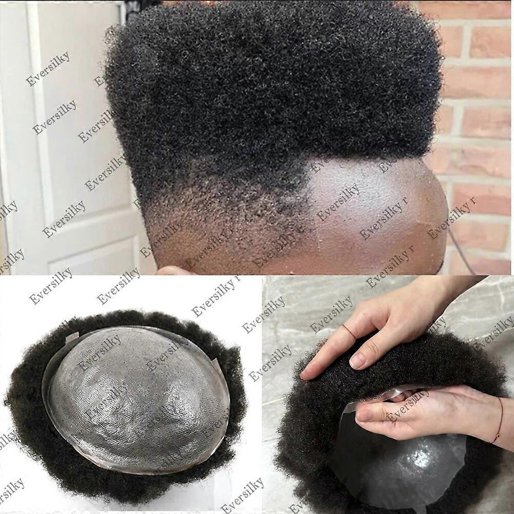 4mm Afro Curly Toupee For Black Men Jet Black Durable Full Skin Hair System Hairpieces With Knots Male Hair Capillary Prosthesis