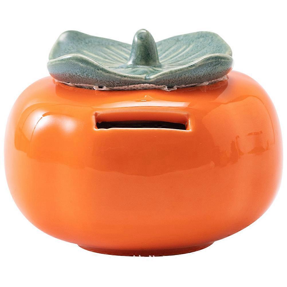 Persimmon Piggy Bank Ceramic Coin Holder For Kids Living Room Decoration 9.7X7.5CM Simple Design 1Set