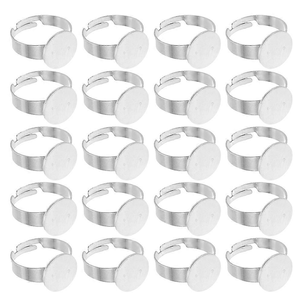Finger Ring Blanks Stainless Steel Adjustable Round Flat Base Bezel Tray For Jewelry Making Diy Crafts All Skin Types 40Pcs