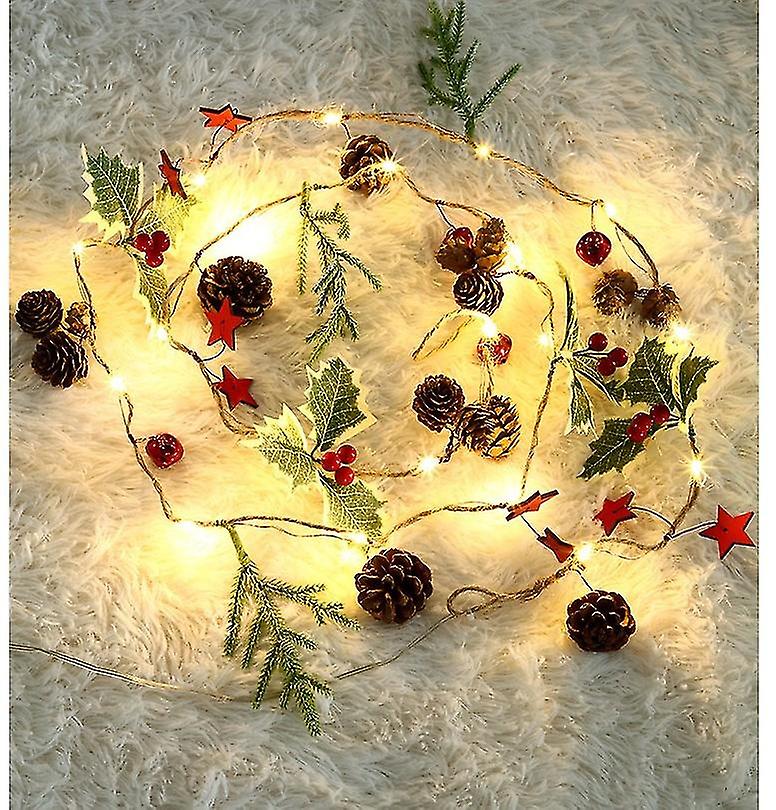 Pine Cones Christmas Light Garland, 2M 20 LEDs Christmas Lights with Red Berries Bell Garden Garland