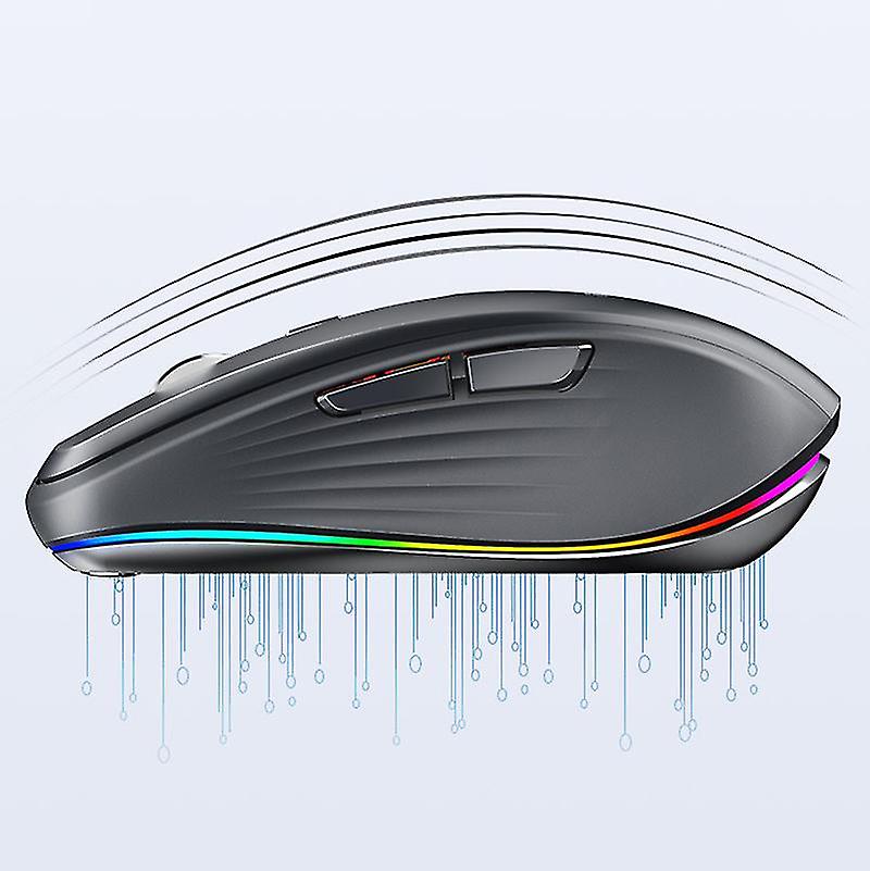 TWO MODELS WIRELESS RGB RUNNING HORSE LAMP MOUSE 2.4G WIRELESS+BLUETOOTH Rainbow Lights: Fmouse M303 wireless mouse is a colorful and small LED mouse. You can easily switch up to 10 different light backlit or turn off the light by pressing the bottom LED button.It makes your working & life more interesting and cool. Type C Charging: This changing color wireless mouse use a rechargeable battery, it charges through a type C cable. The mouse will auto be in sleeping mode to save battery, and there is a low power indicator, it flashes red light when the battery is low, which help you to charge on time. 4 DPI Level & Comfortable Design: USB computer mouse wireless has 4 DPI levels (800/1600/2400/3600), free to control your own speed of the mouse. Thanks to the design, this mouse fits well for a small or medium hand, prevent any possible wrist pain. Plug & Play: The wireless mouse comes with a small USB nano receiver ( stored at the bottom of the mouse), you can just plug it into your computer and you are ready to go. Universal Compatibility: Works with any computer PC Laptop tablet with USB or type c port, running on Windows XP, Windows Vista, Windows 7/8/10, Mac OS etc. Model: M303 Type: 2.4G+BT5.1 dual-mode optical mouse DPI: 2400 Size: L100*W65*H34mm Feature: 7-button wireless charging mouse RGB marquee Bare metal weight: 725g Battery capacity: 700mAh Battery type: polymer lithium battery Fretting life: 5 million times 1* Wireless Mouse 1* Type C Charging Cable 1*USB Receiver (under earth the mouse) 1* User Manual Note: 1. It's out of power if the mouse cursor moves slowly or stop moving, the indicator which below the DPI button will flash red light, please use the charging cable to recharge it. It's recommended to charge the mouse on computer interface. 2.Please charge the mouse for 2 hours before the first time to use it. The red light beside the scroll wheel will be on while charging, and then goes off when the mouse is fully charged. 3. The mouse will be in sleeping mode after 8 minutes inactivity, you can click any button to wake it up. 4. If connection fails, turn off the mouse, remove and reinsert the dongle, then turn on the mouse try again.