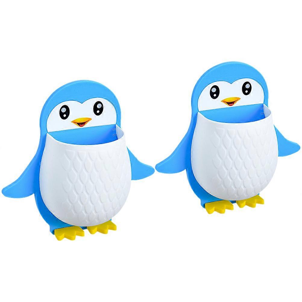 Penguin Shaped Wall Mounted Storage Organizer For Office Use Blue 20x19.5CM 2Pcs