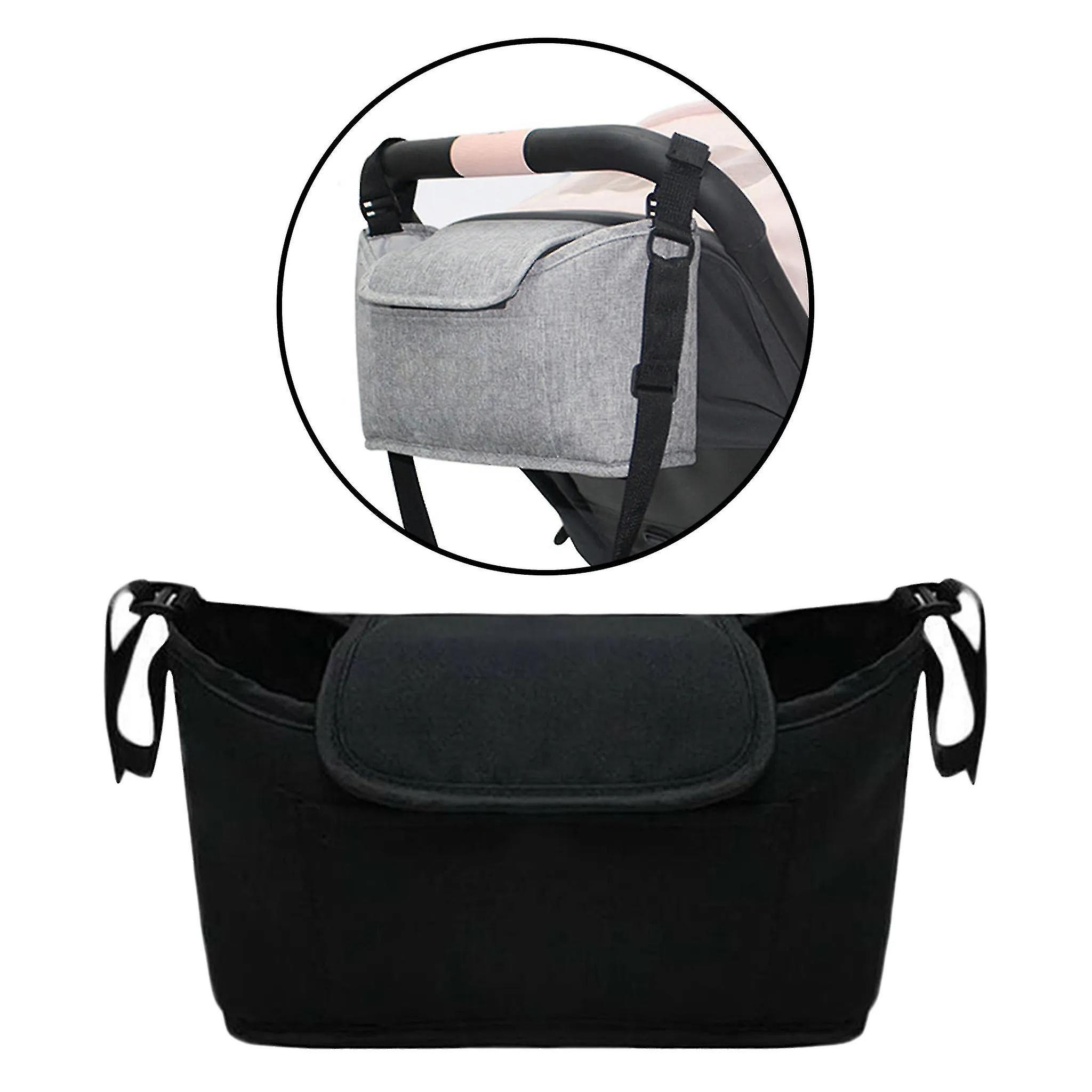Baby Buggy Organiser Baby Pushchair Pram Cup Holder Bags Mummy Bag Universal Organiser Black-1pcs -e