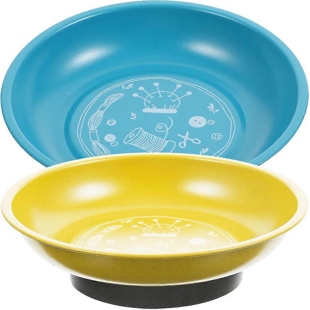 Magnetic Needle Organizer 2pcs Premium Sewing Accessories Durable Magnet Pincushions for Convenient Needle Storage Blue Yellow for Quilting Embroidery