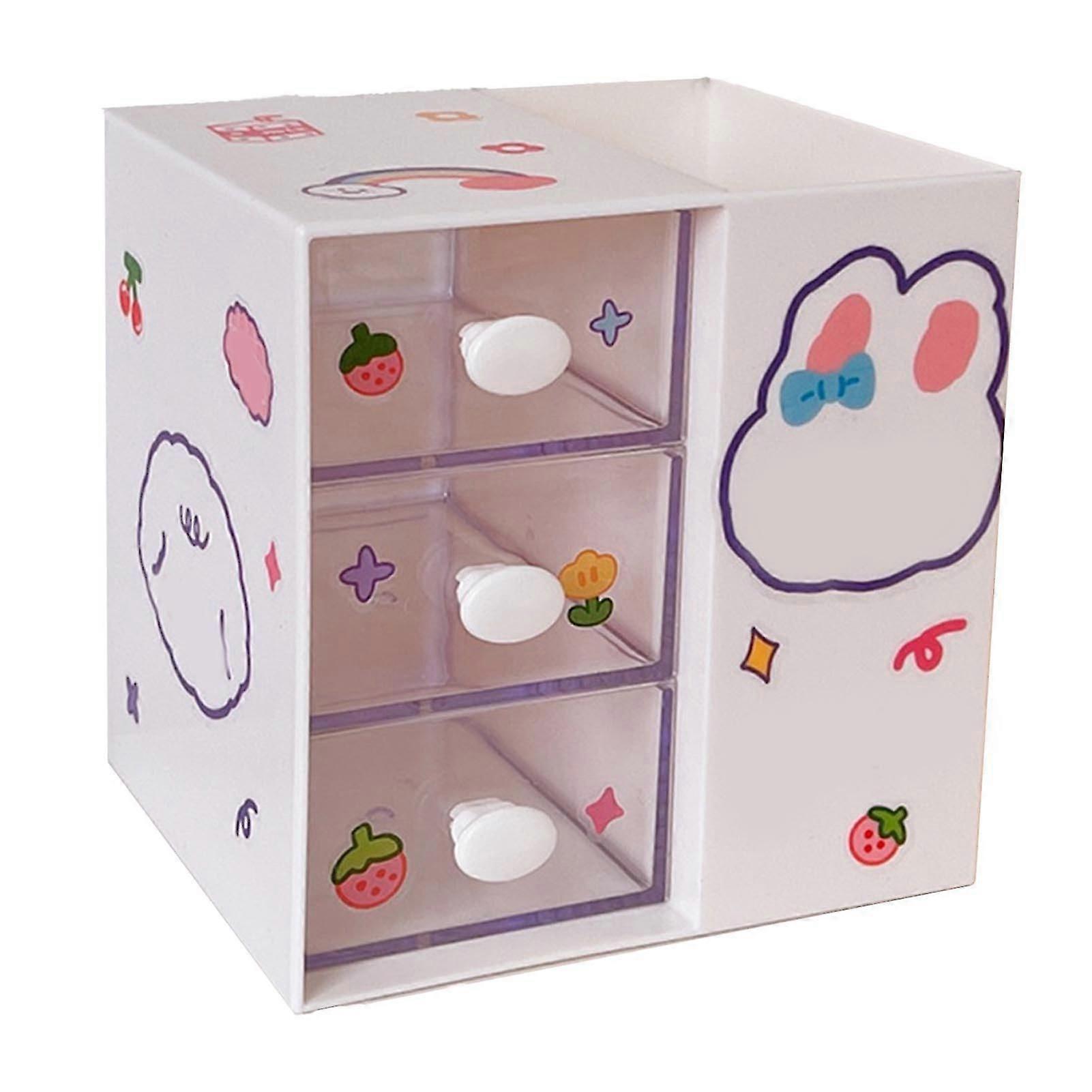 Stationery Organizer Cute Cartoon Pattern Plastic Ins Style with Pen Container Stickers Office Supplies Desk Holder Suitable for Study Room Dormitory