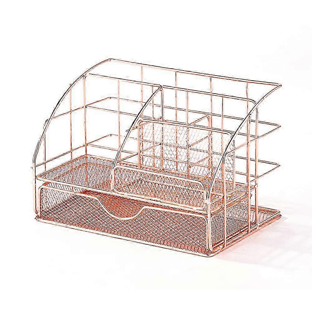 Desk Organizer with Drawer Office Desk Pen Holder with 5 Compartments + 1 Large Drawer Wire Mesh 2025