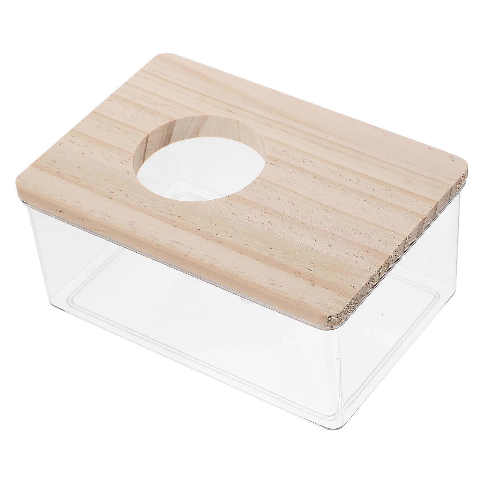 Small Animals Hamster Sand Bath Box with Transparent Acrylic and Wood Lid 3Pcs