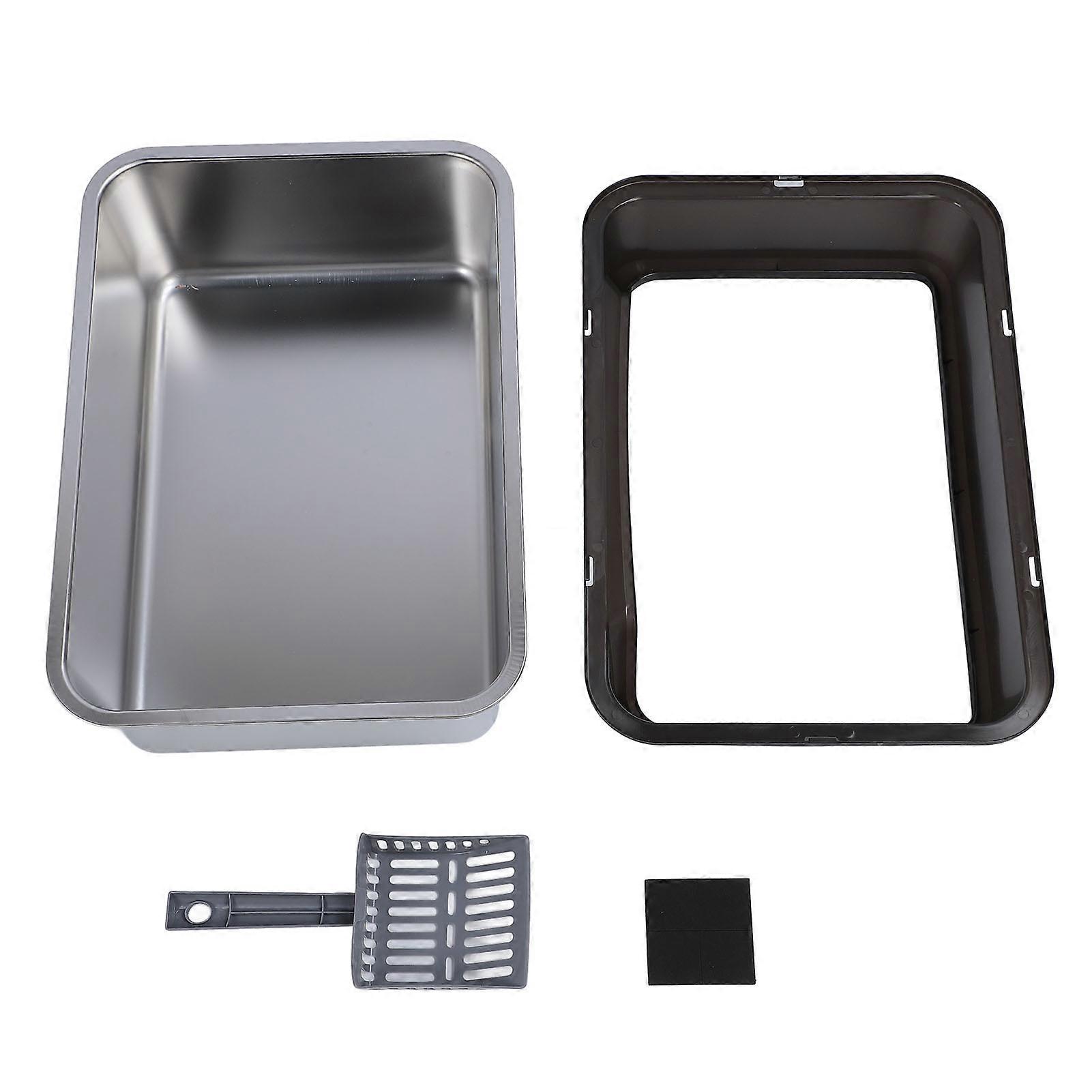 Stainless Steel Cat Litter Box Anti Splashing Top Entry Large High Sided Kitty Litter Pan with Scoop for Big Cat Black