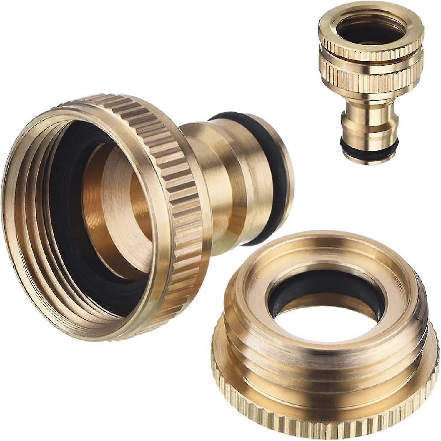 2 Pack Faucet Fittings: The hose of the faucet is made of brass, which is of reliable quality, not easy to break and has no corrosion, and has a longer service life compared to plastic hose fittings. Applicable faucet size: 1/2" and 3/4" 2 sizes in 1 connector; if you split the connector in two by unscrewing the bottom, use a 3/4" threaded tap for the larger portion and a 1/2" threaded tap for the smaller portion. Quick and easy to install: Female and male threads make it easy to tighten and operate quickly and conveniently without additional tools, and quick connectors make it easy to connect faucets and hoses. Note: 1. If the faucet does not close well, you can wrap the sealing tape around the faucet to make the connection better. The 2 parts are together, you have to unscrew it to make it 2 parts. Plugs fit 95% of faucets, not all, please check your faucet size before purchasing. 2. The plug is attached to the nipple so that it is male. 3. If the faucet does not close well, you can wrap the sealing tape around the faucet to make the connection better. 4. The faucet itself has a plug, you can remove the original plug and then install this product.