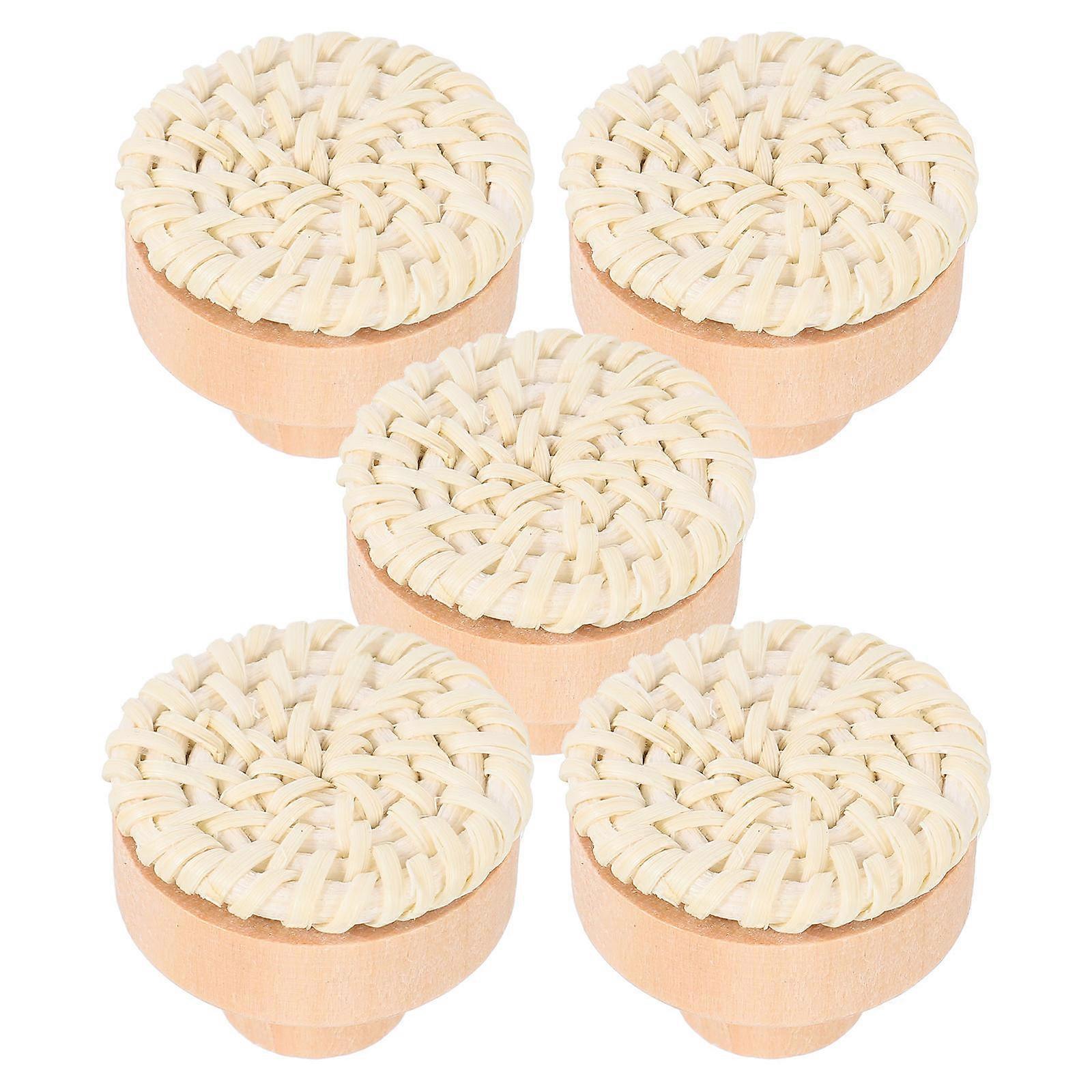 Cabinet Wood Pulls Rustic Drawer Knobs For Home Improvement 4.00X4.00X3.00CM Natural Wood Rattan Furniture Handles 5Pack
