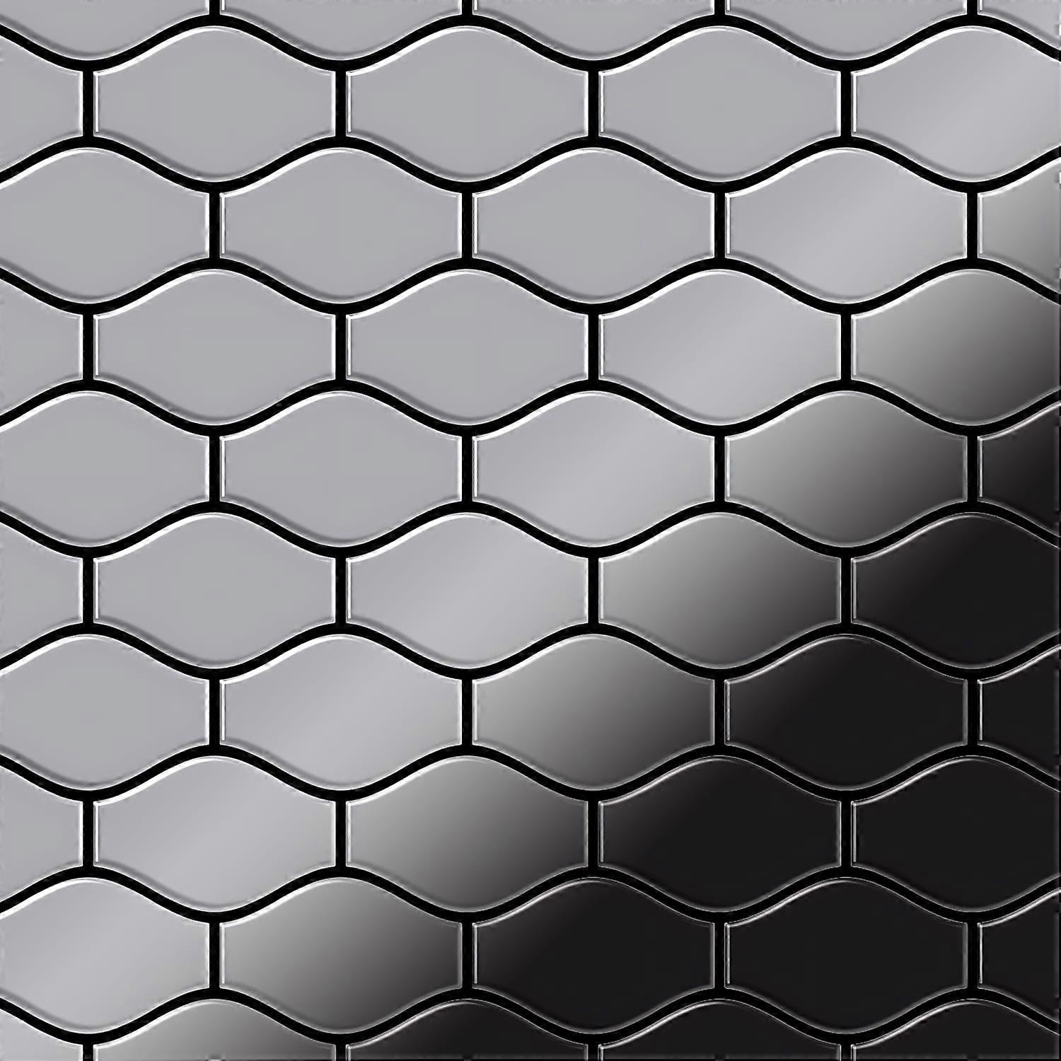 Mosaik Fliese massiv Metall Edelstahl hochglänzend in grau 1,6mm stark ALLOY Karma-S-S-M Designed by Karim Rashid 0,86 m2