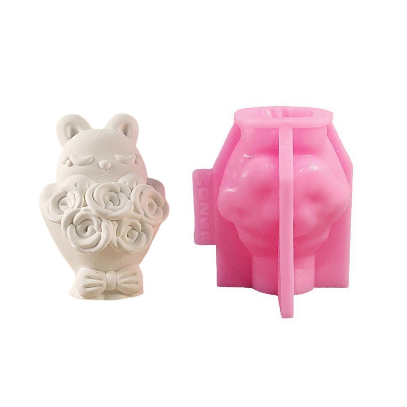 Rabbits Rose Flower Silicone Candle Mould Cement Silicone Molds for Epoxy Resin Candle Home Ornament Home Decoration
