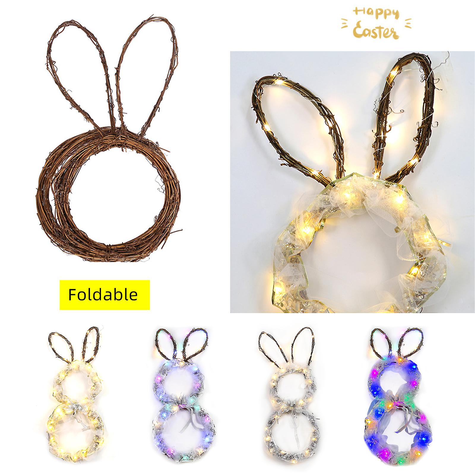 Easter Bunny Wreath Wooden Rattan Cute Party Decorations Led Woven Hanging Ornaments
