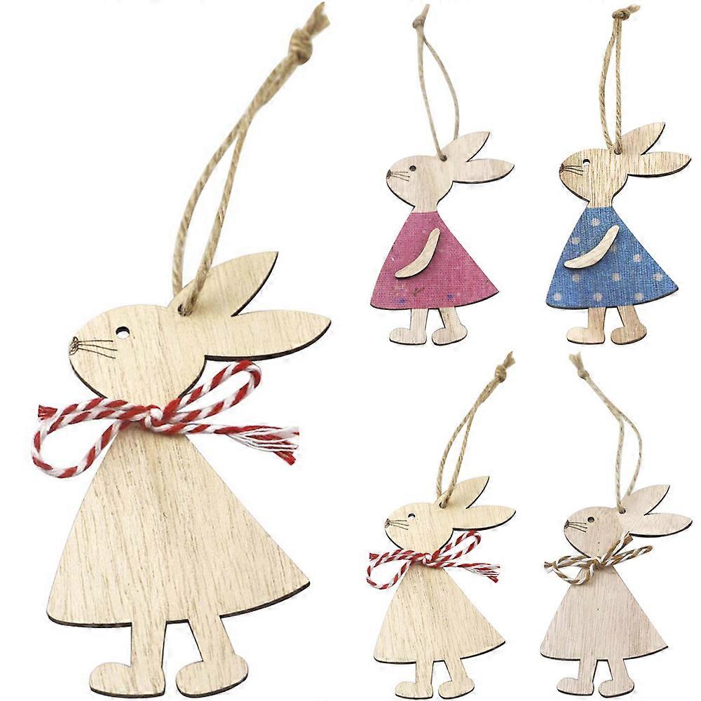 Easter Wooden Bunny Hanging Rabbit Cute Craft Ornament Home Tree Decor