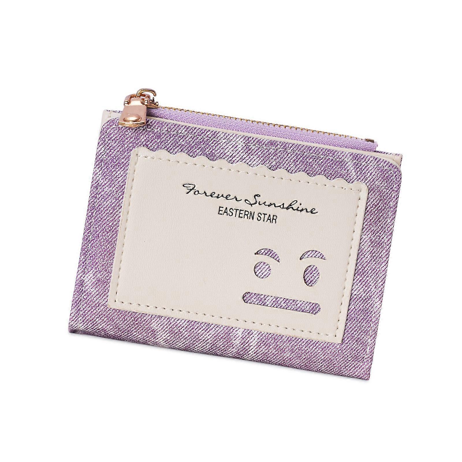 Compact Wallets for Women Bifold Clutch Fashion Denims Purses Ladies Credit Card Holder Money Bag Travel Purses Purple