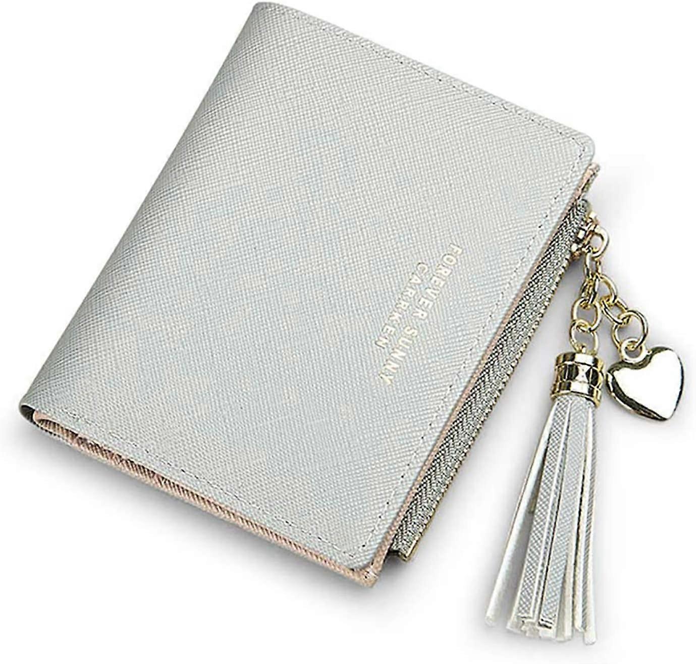 Small Wallets for Women Slim Coin Purse Zipper ID Card Holder Compact Cute Clutch Purses for Girls Grey