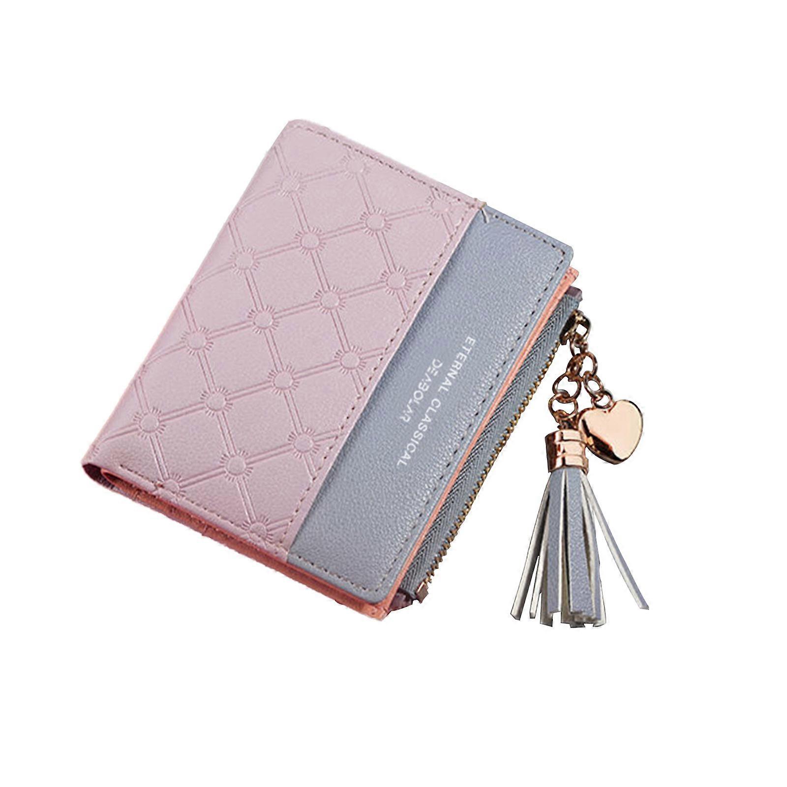 Small Wallets for Women Bifold Slim Coin Purse Zipper ID Card Holder - Red