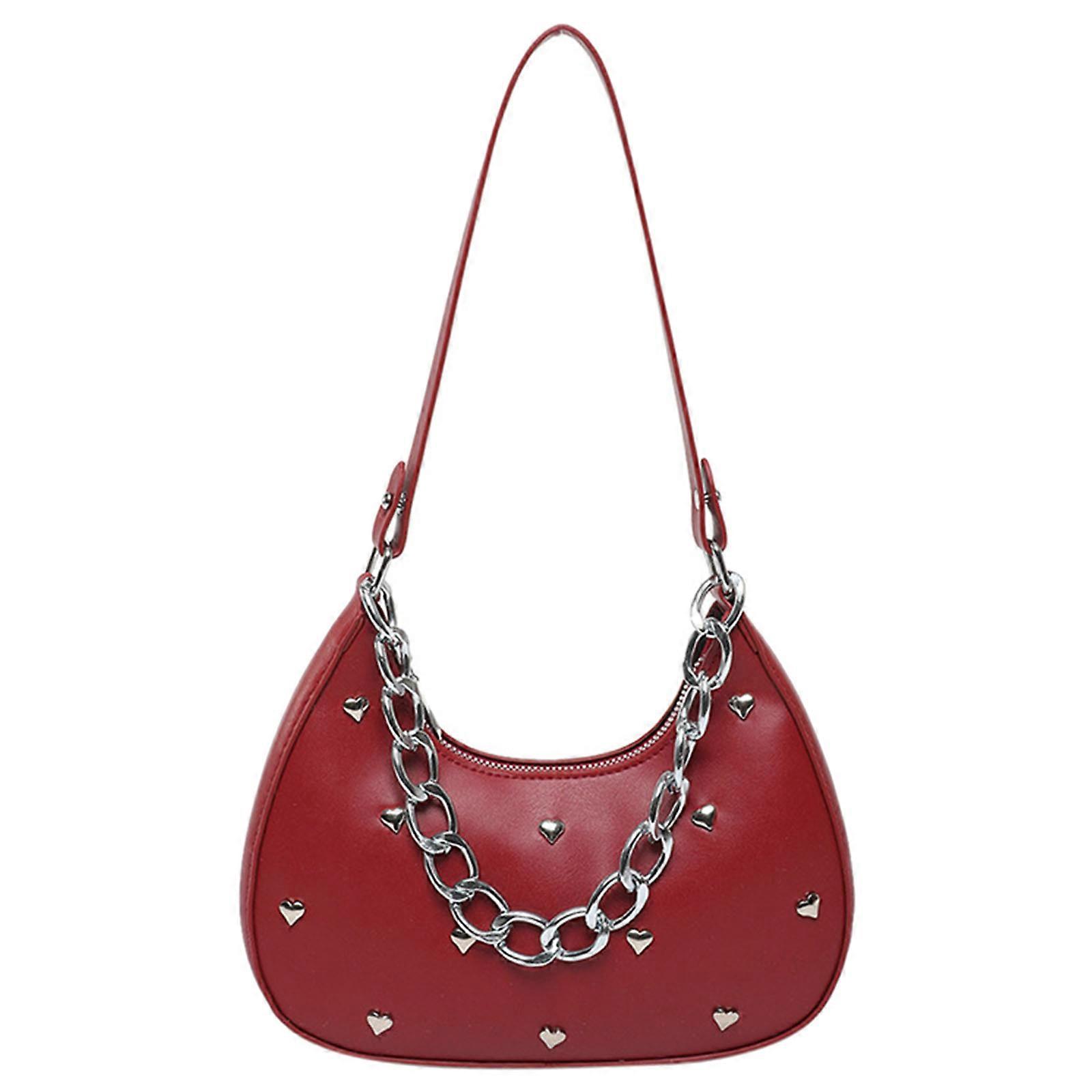 Fashionable Underarm Purse Practical PU Leather Shoulder Bag Casual Handbag Practical Armpit Purses for Everyday Use Red