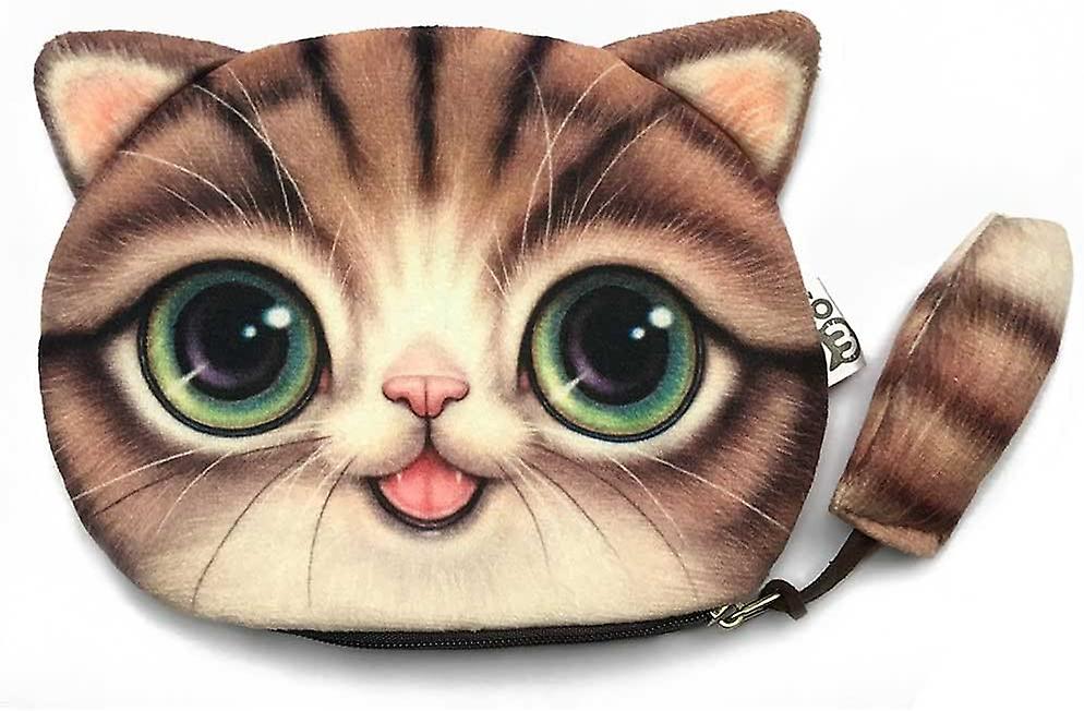 Big Eyed Cat Wallet With A Tail Lovely Purse With A Tail Zipper Closure Handbagbrown- 3 Pack
