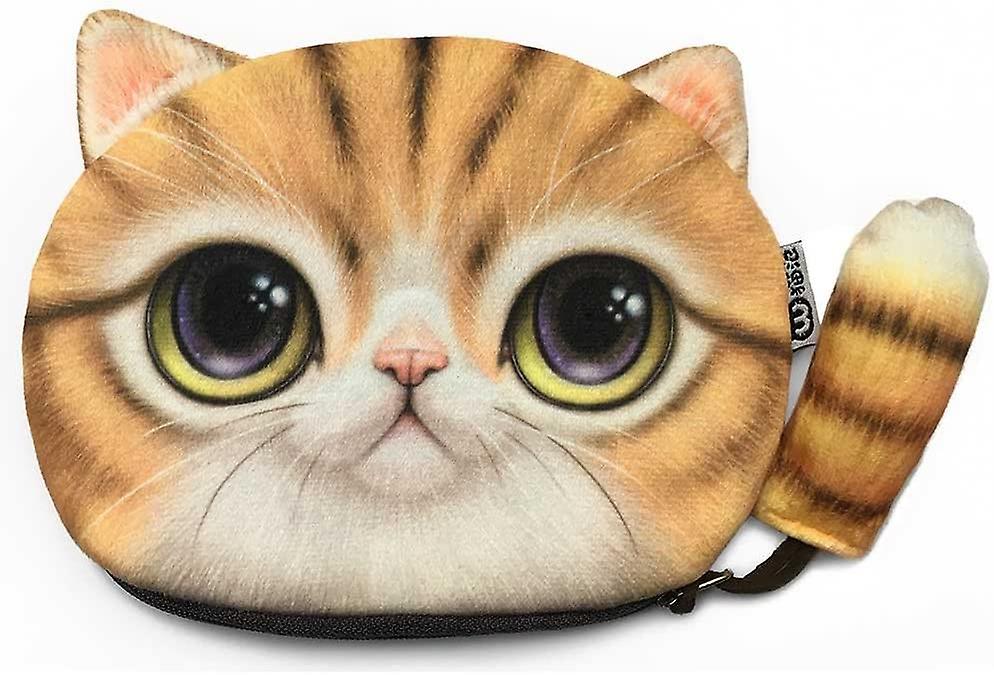 Big Eyed Cat Wallet With A Tail Lovely Purse With A Tail Zipper Closure Handbagyellow- 3 Pack