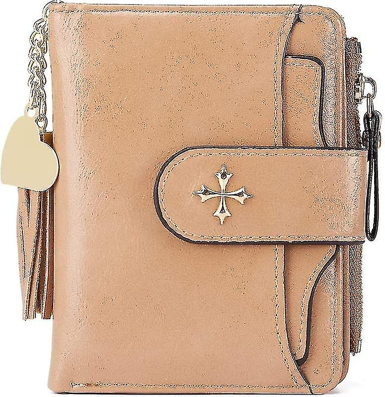 Wallet For Women Genuine Leather Rfid Blocking Mens Wallets Bifold Card Case With Zipper Pocket (khaki) Khaki -