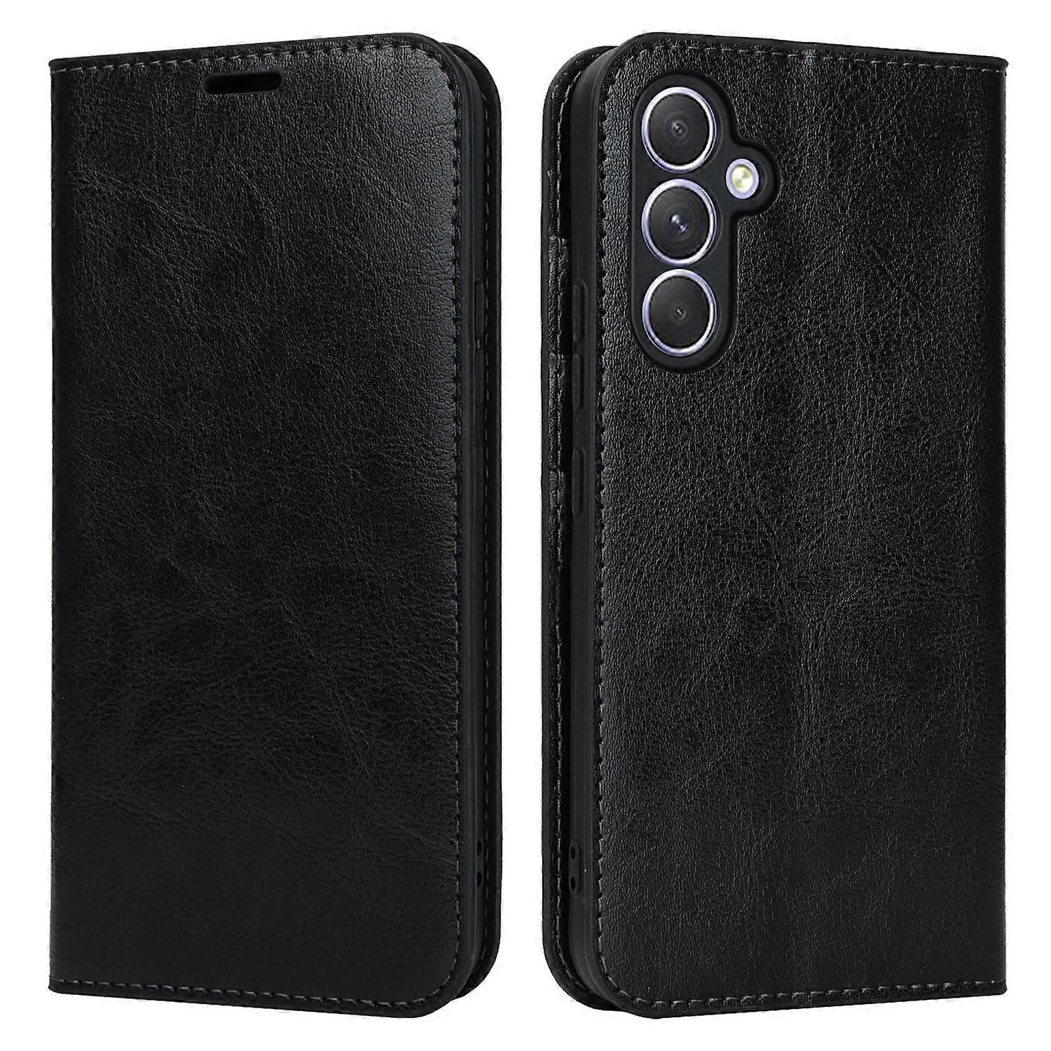 Stand Wallet for Samsung Galaxy A54 5G Crazy Horse Texture Genuine Cow Leather Cover Phone Case - Black •Crazy horse texture genuine cow leather outer cover with delicate touch feeling, bouncy and scratch-proof •TPU inner case with good flexibility seamlessly fits your phone •Inside features with 3 card slots and a side pocket to conveniently carry your cards and money •Foldable stand for convenient viewing, simplifying your work and life •Strong magnet for auto closing, keeping your phone, cards and cash safe •The raised lip at the back that is higher than the phone camera can offer a better protection •Reserved receiver hole allows you to answer the phone with the case close Package included: •1 x Phone Case •Other items not included