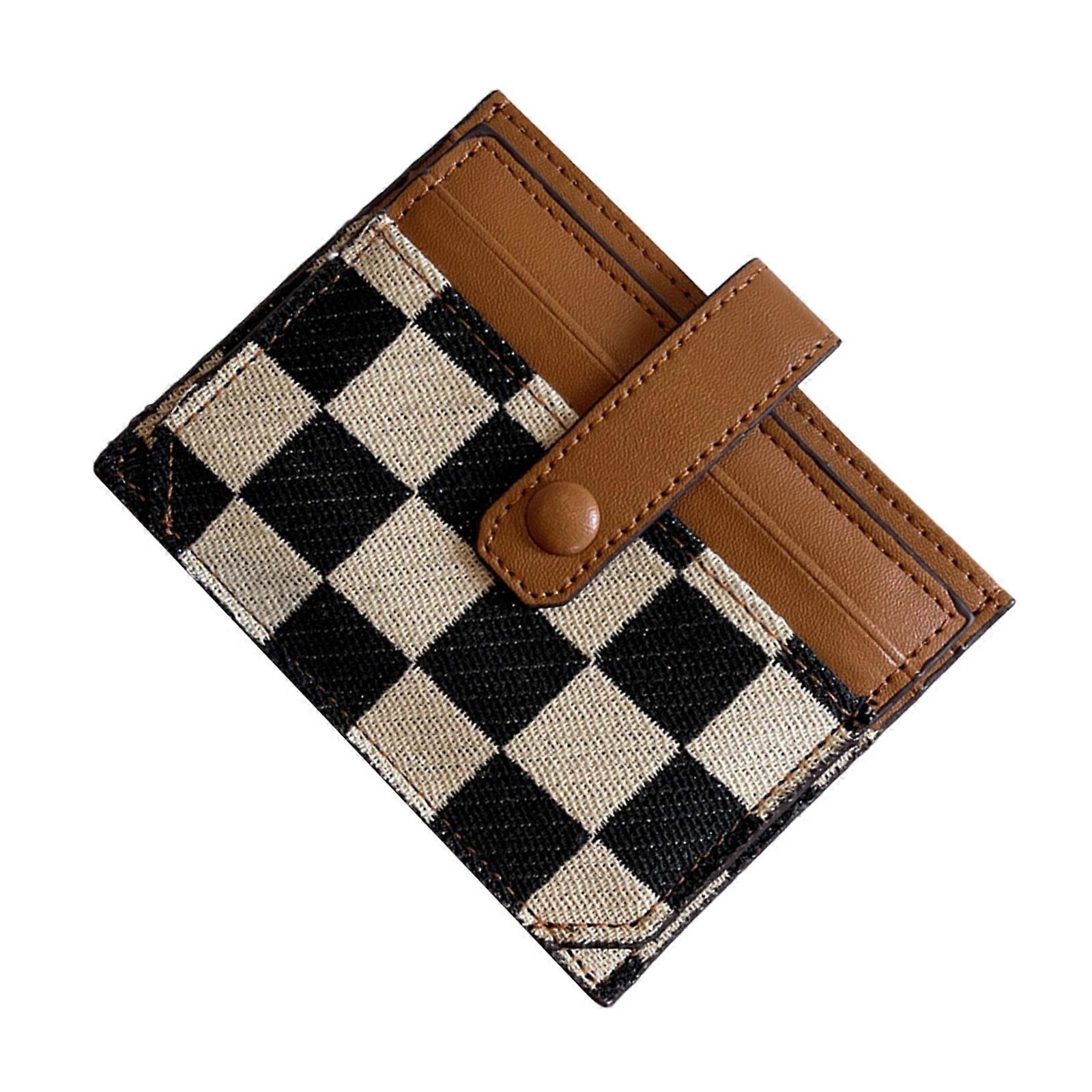 Womens Wallet Small Coin Purse with Card Holder Stylish Change Purse Check pattern Short Purse Canvas Wallet for Daily Yellow