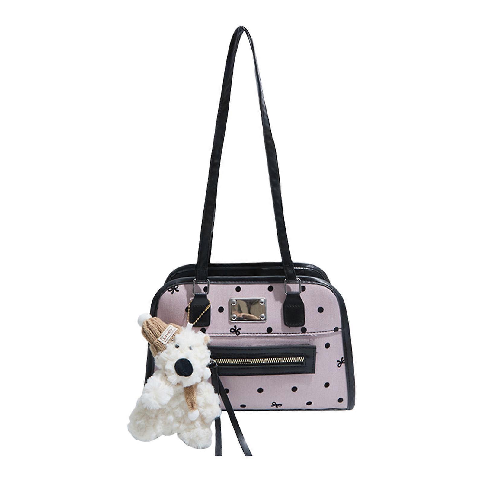 Women's Dot Crossbody Purse With Fashion Pendant Decoration Lightweight PU Handbag Practical Organizational Features Adjustable Strap Pink