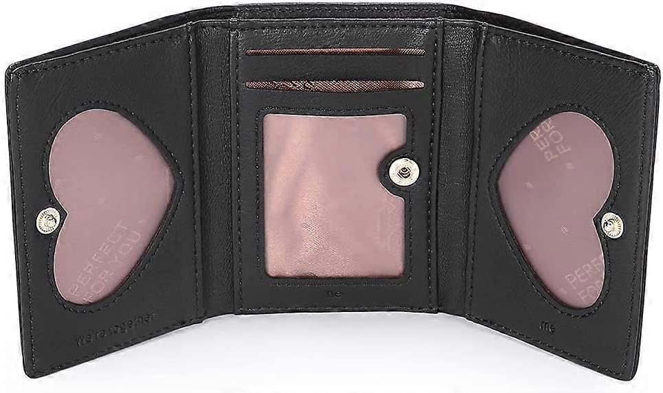 Small Wallet for Women Vegan Leather Compact Bifold Zipper Pocket Wallet Card Case with Photo Slots Black