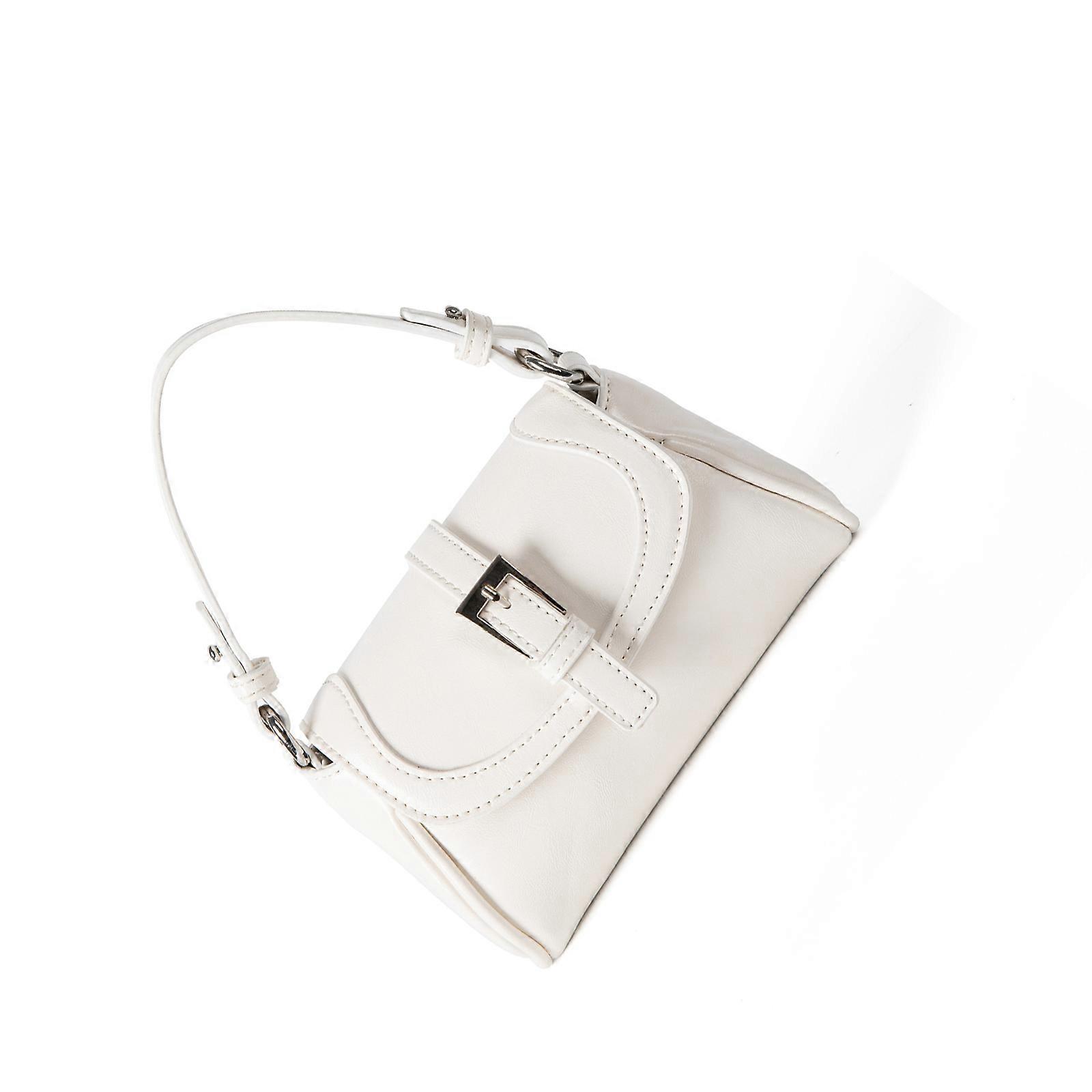 Adjustable Crossbody Purse With Belt Buckle Detail Roomy Interior PU Leather Shoulder Bag For Everyday Essential White