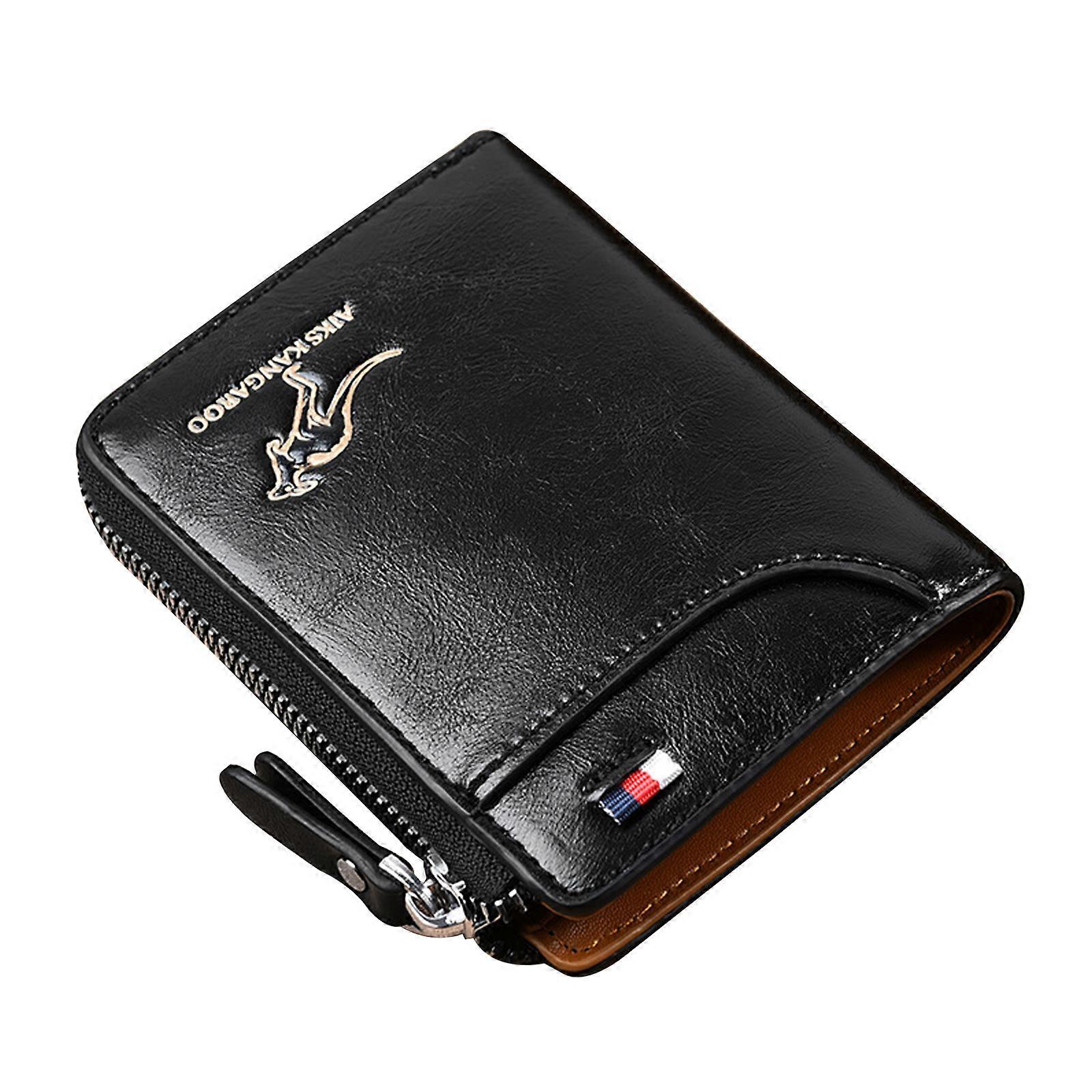 Vintage Leather RFID Wallet with Zipped Pocket and Anti Magnetic Coin Purse, 14 Card Slots, Black