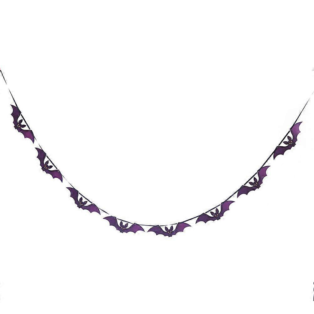 Halloween Banner Purple Bat Hanging Bunting Horror Door Hanging Garland Pull Flag for Home School Office