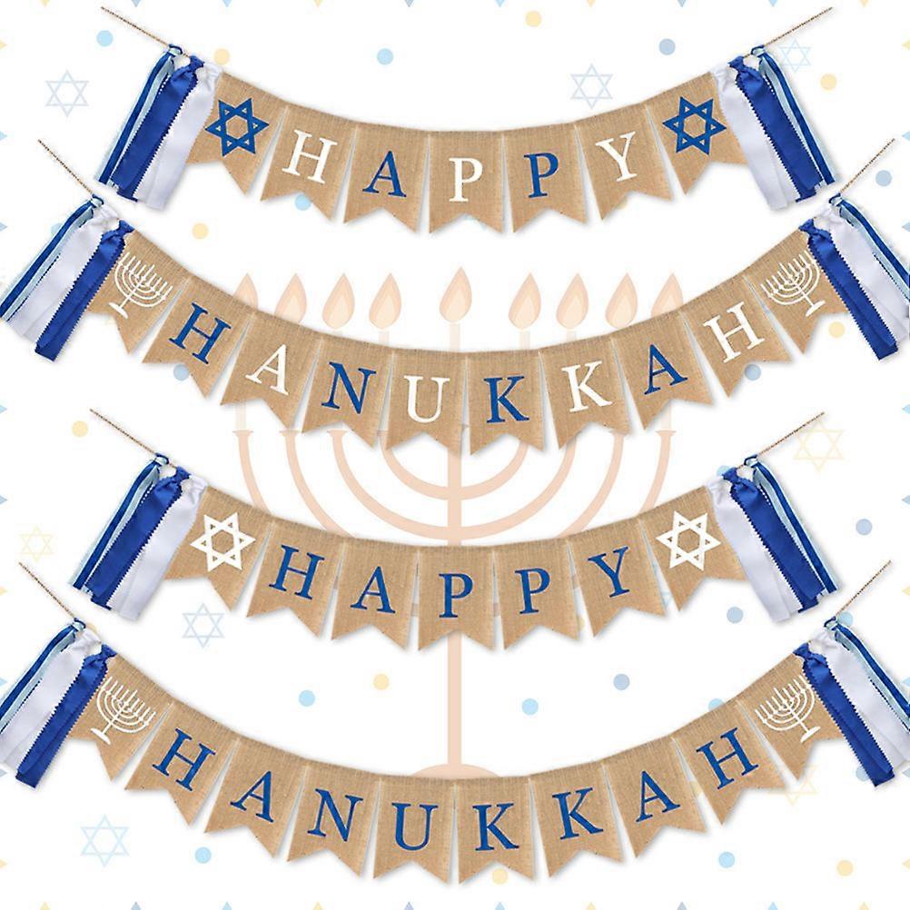 Happy Hanukkah Party Banner with Tassel Decorations for Mantle Fireplace Decoration cloth Assorted Color