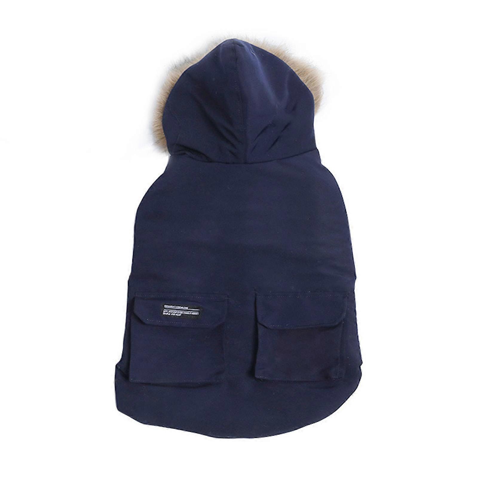 Pet Dog Clothes Warm Hoodie Coat Winter Jackets Cute Outfit Sticky Straps Closure Costume for Small Medium Dog Dark blue L