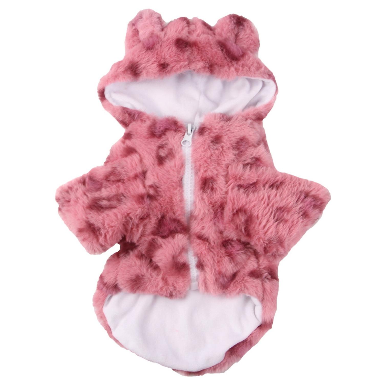 Pet Clothes Zipper Leopard Print Windproof Plush Puppy Two-legged Hoodie Thermal Coat Pet Outfits