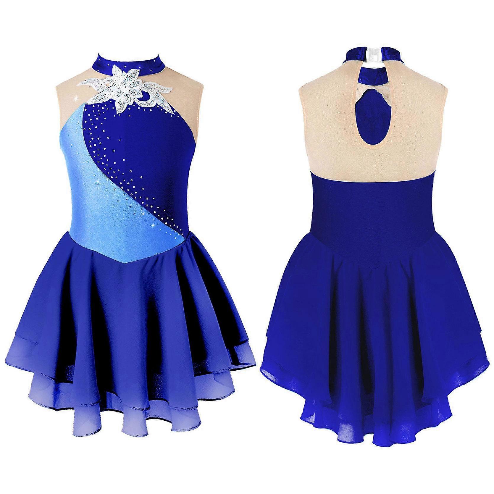 Gymnastics Leotards for Girls Sleeveless Rhinestone Ice Skating Dress Floral Dance Dresses