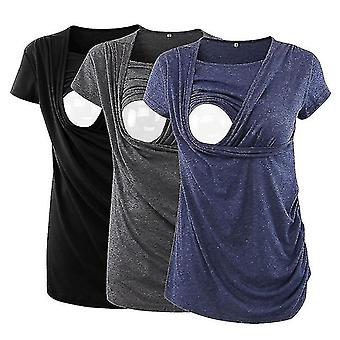 בגדי הריון פסים עליונים חולצת טי הנקה בגדי ריקוד נשים הריון חולצות הנקה מזדמנים אסוף צד