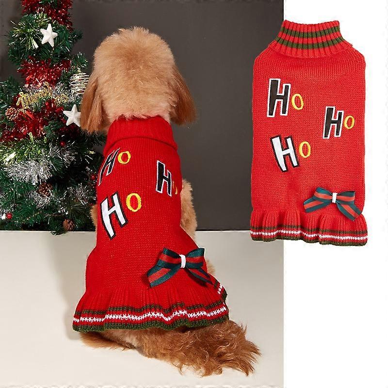 Pet clothes autumn and winter HO embroidered bow sweater skirt Teddy dog cat Christmas and New Year clothing