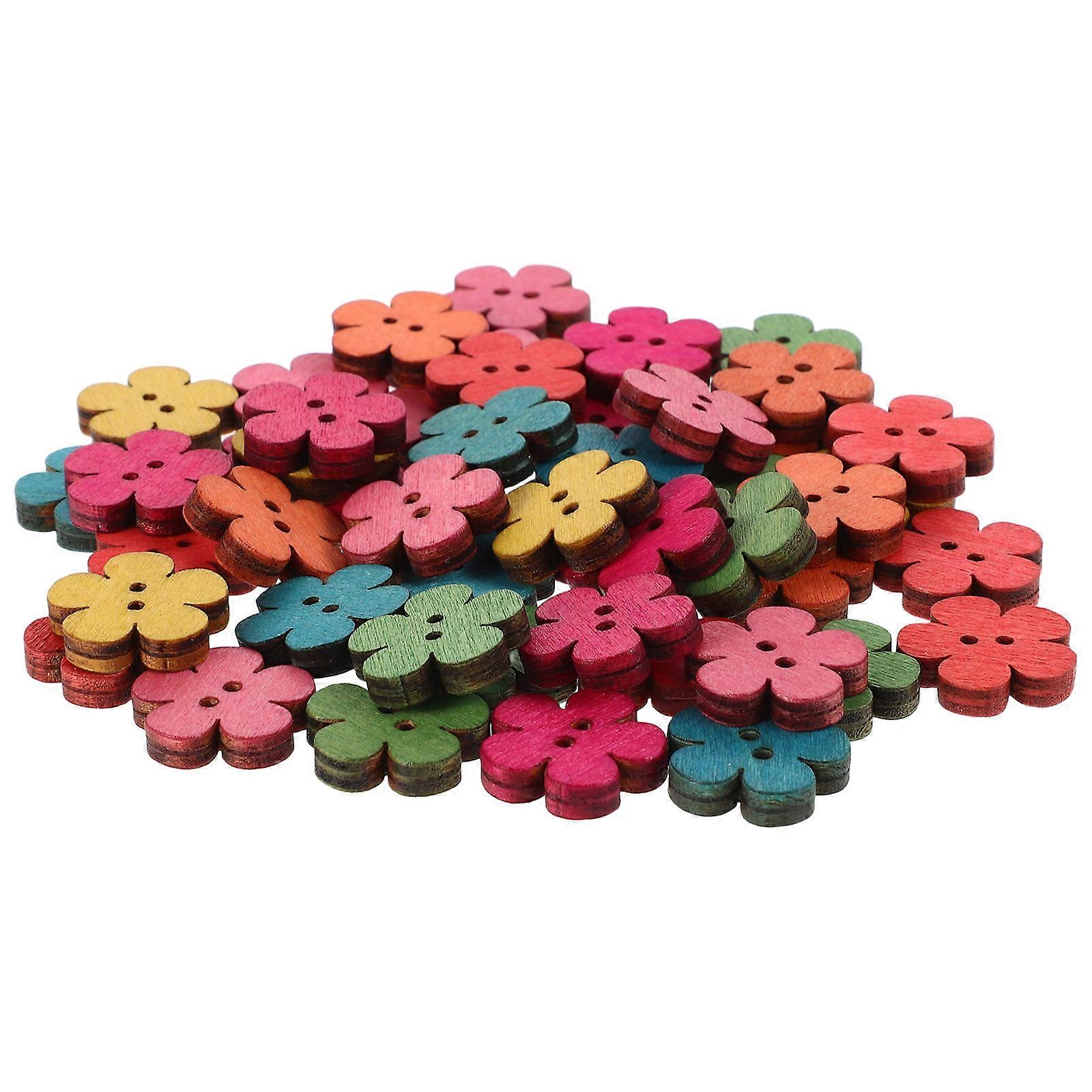 Children'S Clothing Decor Wooden Flower Buttons Assorted Color For Diy Crafting Sewing Projects 50Pcs