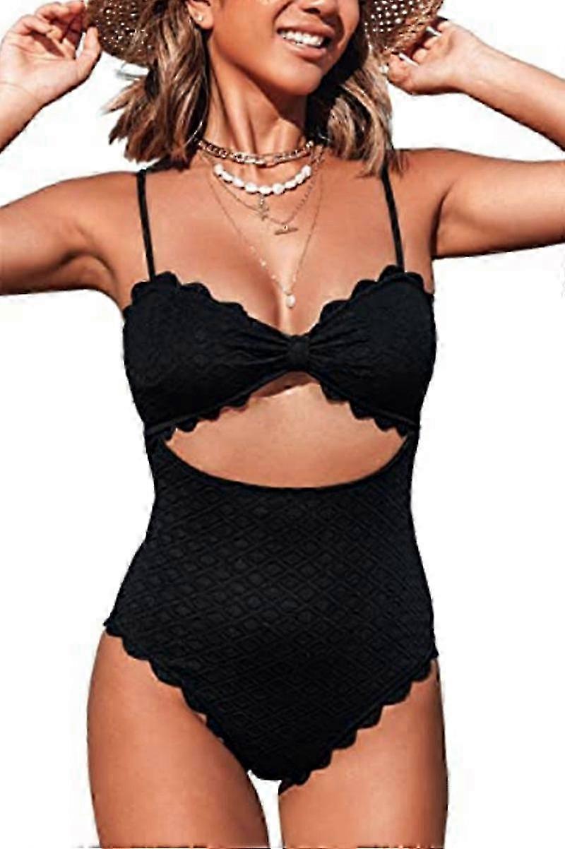 Women's One Piece Swimsuit Sexy Black Cutout Scallop Trim Bathing Suit Small