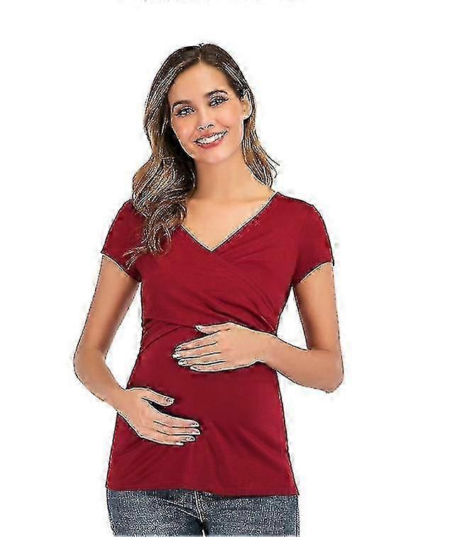 Summer Short-sleeved Maternity Clothes Deep V-neck Solid Color Cross-type Nursing Clothes Nursing Clothes